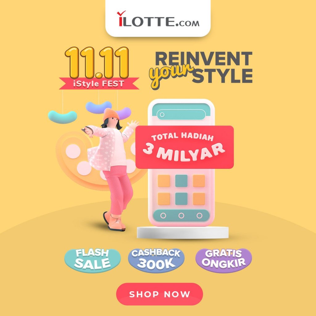 11.11 iSTYLE Fest. Total Hadiah 3 Milyar. Cashback Hingga 300K. Flash Sale Tiap Hari. Extra Diskon Hingga 200K. Free Ongkir!!